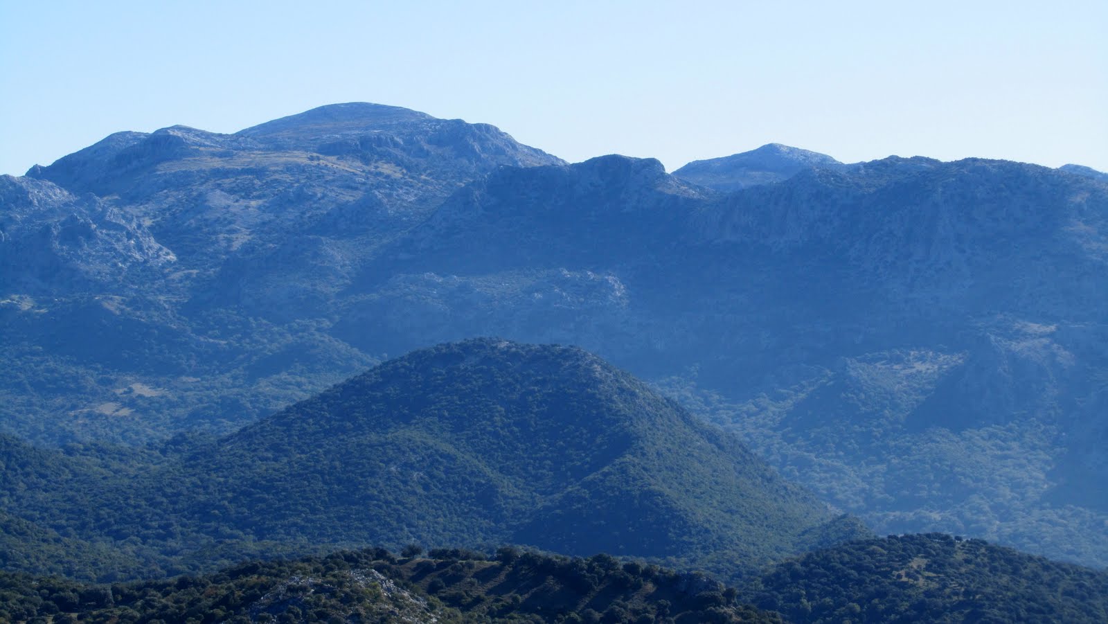 | Las brumas restan nitidez al paisaje, en la imagen vemos el Navazo Alto y a la derecha Benaocaz. |