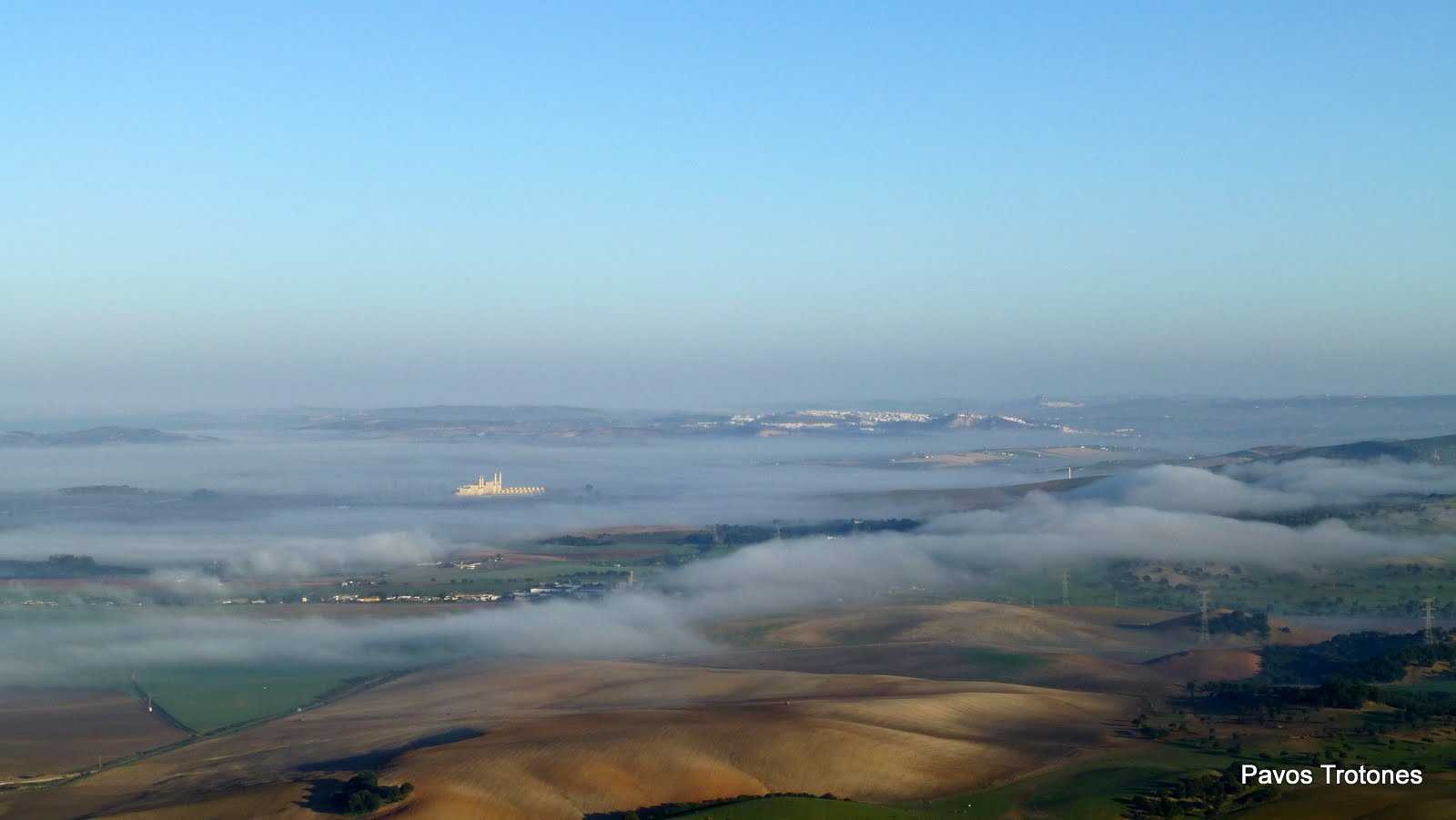 | Durante la subida disfrutamos del paisaje cubierto por un manto de niebla. Esta cubre las Vegas de Arcos y del Valle. Arcos emerge del mar nuboso. |